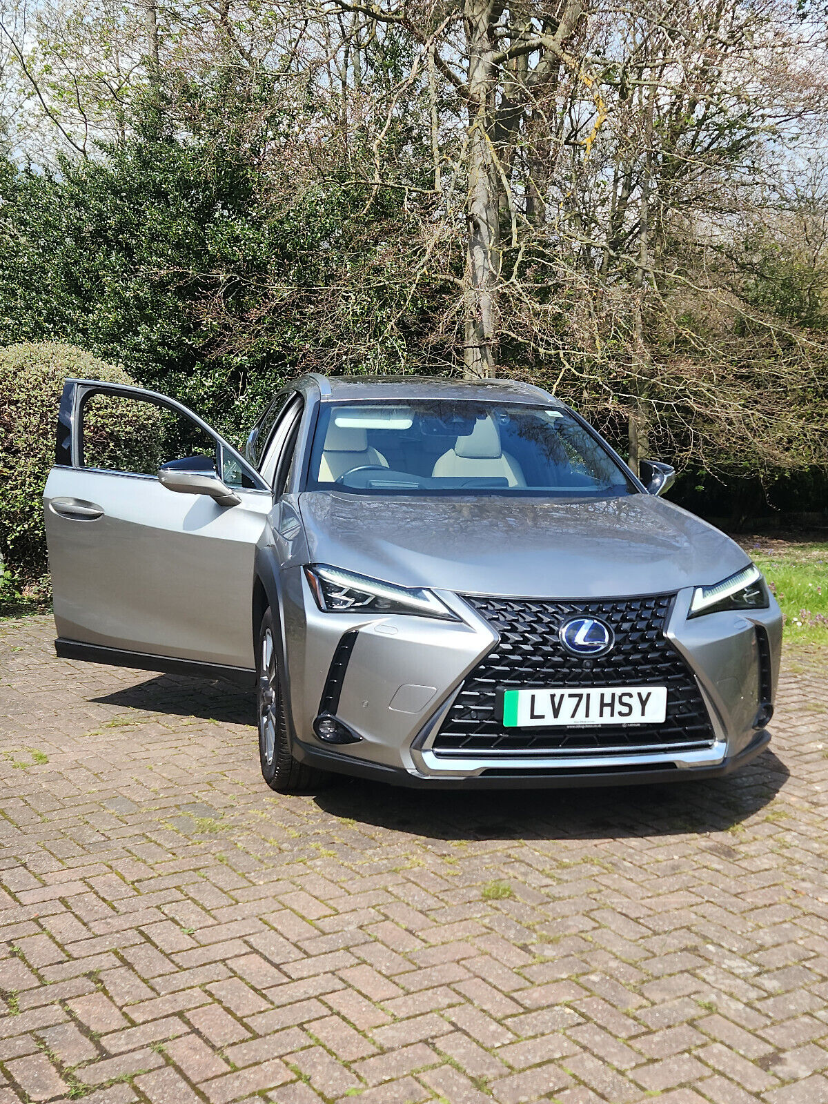 Lexus UX Electric Hatchback Finished in Sonic Titanium Specification Includes Exterior Features,Special metallic paint,Paint - Special,Special metallic - Sonic titanium,Exterior Features,Front and rear one touch power windows,with anti-jam protection,Light green UV glass,Rain sensor windscreen wipers,Rear wiper,Variable front intermittent wipers,Front and rear performance dampers,Vehicle Dynamics Integrated Management (VDIM),Vehicle Stability Control (VSC),inelectricin badging,Aluminium roof rails,Front and rear performance rod,Rear side wing doors,Bi-LED (low and high beam) headlights with Auto High Beam (AHB),Headlight cleaners,LED daytime running lights,LED front and rear fog lights,LED third brake light,Safety,Anti-lock braking system (ABS),BAS (Brake Assist System),EBD - Electronic brakeforce distribution,ECB (Electronically Controlled Brake System),Electric parking brake,Hill start assist control (HAC),Secondary Collision Brake (SCB),TRC (Traction Control),3 driving modes Normal/Eco/Sport,Electric power steering (EPS) with speed sensitive features,Front and rear parking sensors with intelligent clearacne sonar,Lane change flasher function,Lexus safety systems + includes dynamic radar cruise control,pre collision system day and night,lane tracing assist,road sign assist,Reversing camera with back guide lines,Electrically adjustable and heated door mirrors,2 x Isofix child rear seat restraints,3x3 point rear seatbelts,Driver and front passenger 2 stage airbag,Driver and front passenger knee airbag,Driver/front passenger side airbags,Electric child locks,Front adjustable seatbelt anchor points,Front and rear curtain shield airbags,Front outer seatbelt+pre-tensioners,force limiter+tension reduction: 3-point with active safety link to PCS,Passenger airbag cut-off device,Rear outer seatbelt+pre-tensioners,force limiter+tension reduction: 3-point with active safety link to PCS,Centre belt w/o pre tensioner+force limiter,Tyre pressure warning,Interior Features,Textile carpet mats,Dual zone electronic climate control + Nano-E humidity sensor,Rear air vents with 2 USB chargers,12V accessory port centre console and luggage compartment,2 cup holders in the front and rear centre console,2 x folding shopping bag hooks in boot,4 x tie down hooks in the boot,Active sound control,Centre armrest with storage,Driver and passenger door pocket,Glovebox,Leather gear lever,Leather steering wheel with paddle shifts,Power adjustable steering wheel,Premium fabric Continue reading...